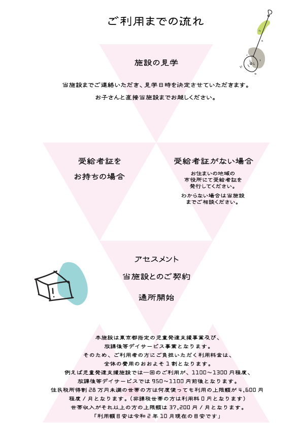 A2 市役所が発行する通所受給者証があれば、障がい者手帳や療育手帳がなくともご利用いただくことができます。